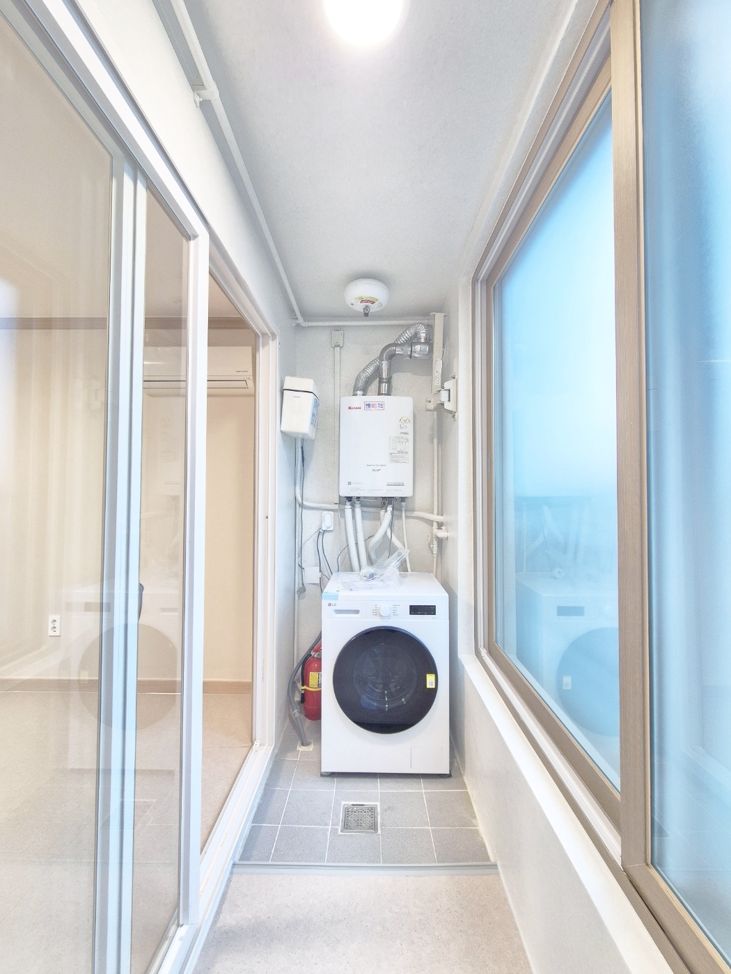 ◇ 베란다 넓고 세탁실 물넘치지않게 턱이조금있으며 수납장이설치되어있어요